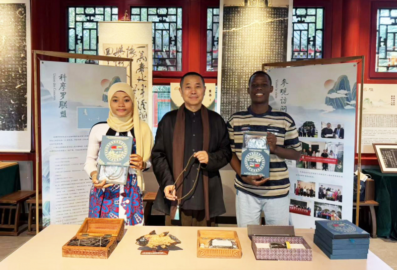 今年恰逢中国与科摩罗建交50 周年,活动特别围绕这一重要节点打造文化交流亮点。现场发布的“科摩罗和香珠”文创产品,巧妙融合两国香文化特色 —— 以中国传统和香技艺为基础,融入科摩罗依兰、丁香等特色香料,每一颗香珠既是对建交50周年的致敬,更是文化IP创新表达的生动实践。此外,多组中外嘉宾礼物互换环节温情满满,石景山区送出的“山河永定琉璃卧香炉套装”非遗文创,以精湛工艺承载文化温度,分别与中国香港、科摩罗、韩国香文化代表完成交换,每一次手手相传,都定格下文化交融与跨国友谊的珍贵瞬间。