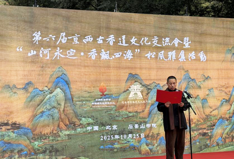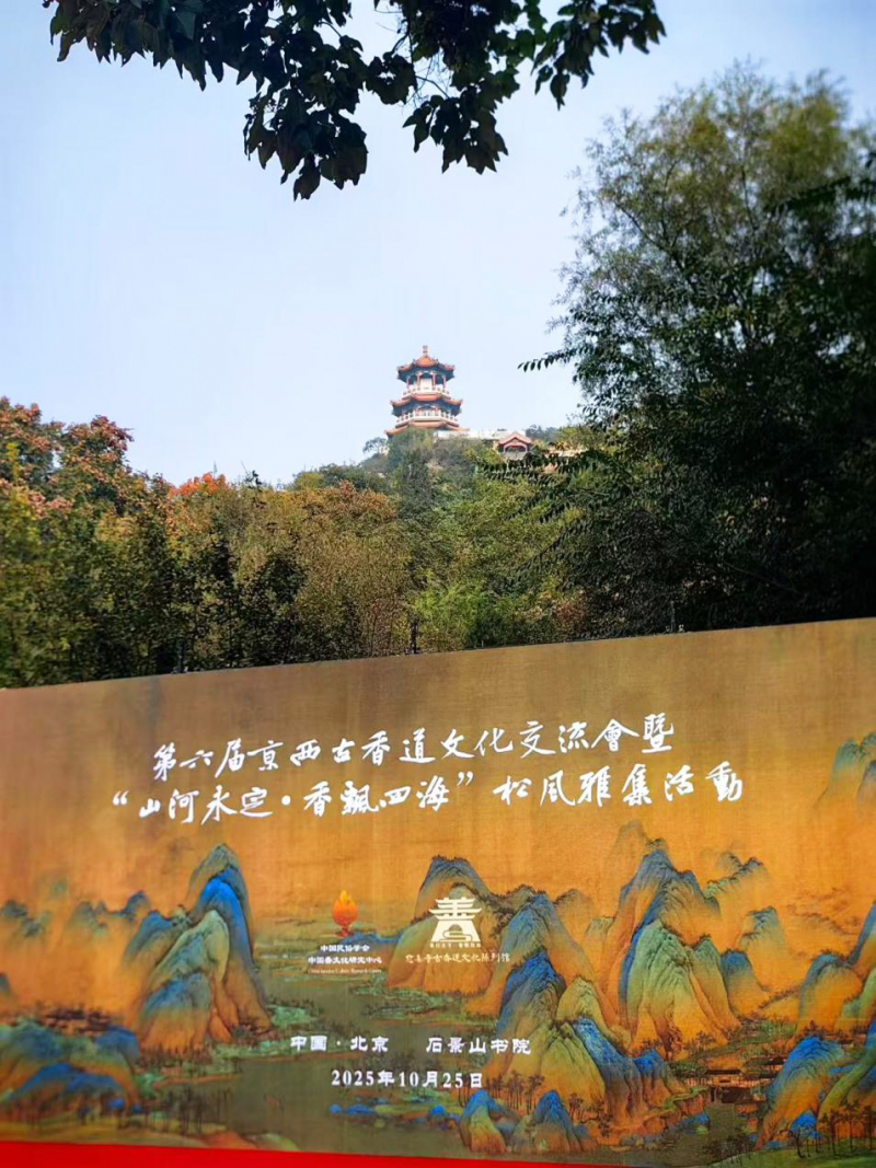2025年10月25日,首钢园内的石景山书院茶香萦绕、雅乐悠扬,第六届京西古香道文化交流会暨“山河永定・香飘四海”松风雅集活动在此圆满举办。50余位国内外领导嘉宾、非遗传承人齐聚一堂,更有来自韩国、科摩罗、苏丹等国家及中国香港地区的百余名香文化学者、技艺传承人共赴盛会,以香为纽带,开启一场跨越国界与时空的传统文化对话,让石景山非遗之美在交流中绽放光彩。